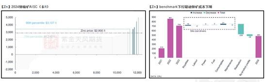 VACC计算后,全球锌矿加权平均成本从2023年的720美元/吨降至2024年的402美元/吨,降幅32%。