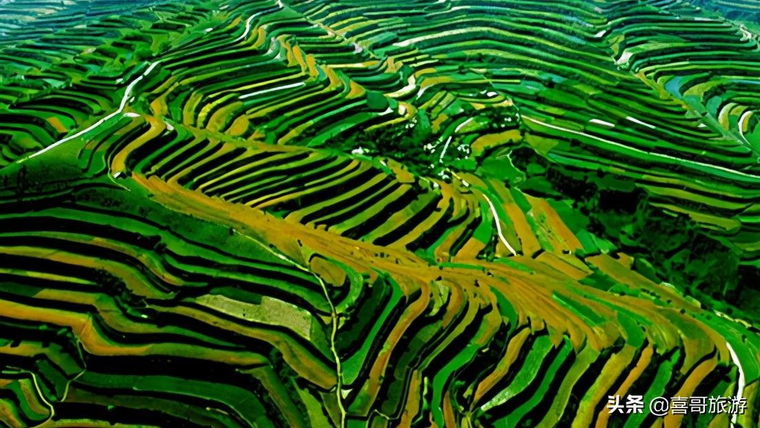【庄浪梯田风景区】位于甘肃省平凉市庄浪县218省道西50米。庄浪梯田规模宏大,气势磅礴,一层层梯田从山脚缠绕到山顶,漫山遍梁,绵延数百里,道道山梁,如巨龙腾飞。