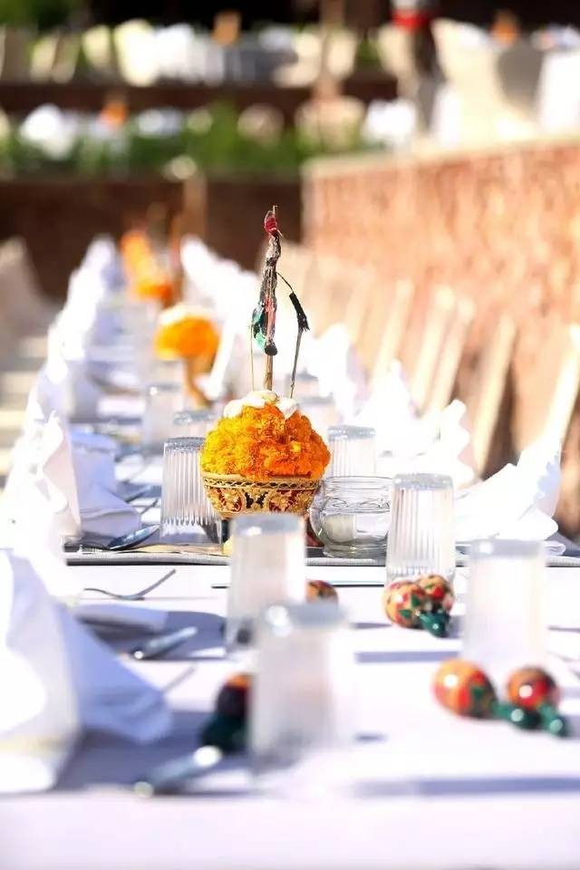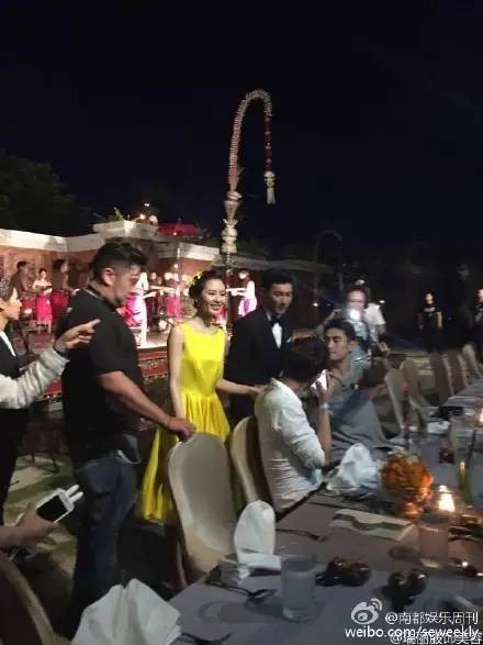 婚礼前一天(3月19日)晚上,两人在巴厘岛举办的迎宾晚宴是这样的,这恐怕是娱乐圈明星最隆重的婚前晚宴。明艳黄裙加头上的黄色花朵,婚礼前的诗诗已经够美了↓