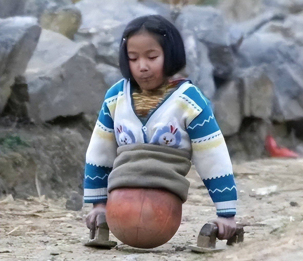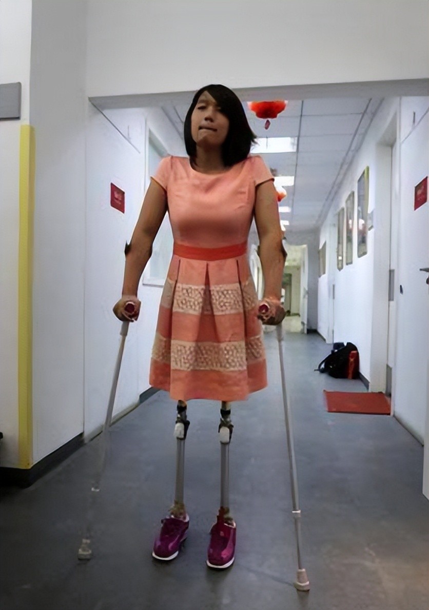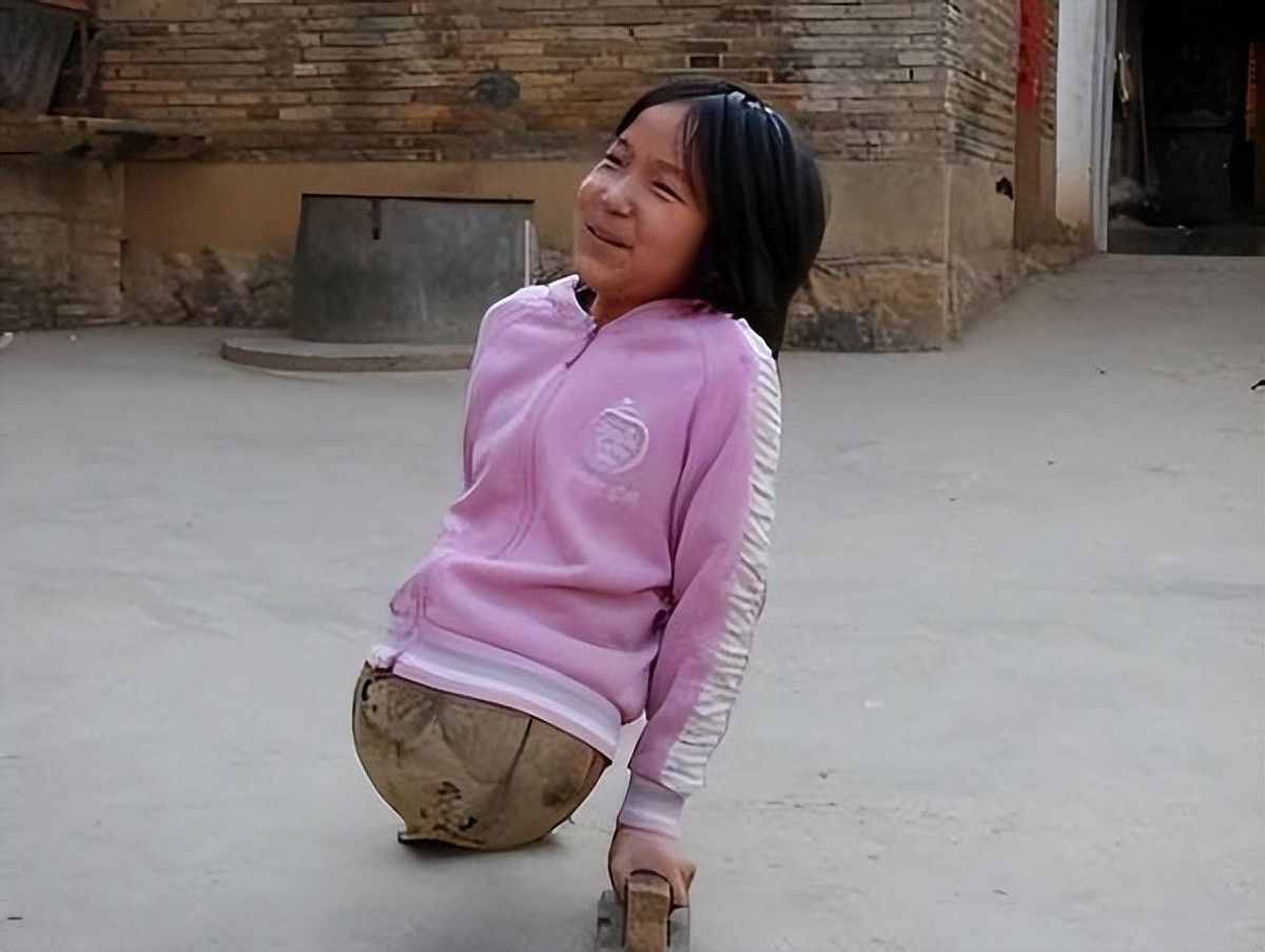 视频中的她双手拿着木质手垫,用破旧的篮球当做双腿一步一步往前“走”的画面牵动了无数人的心。