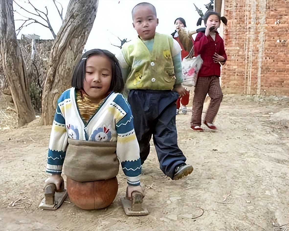 钱红艳4岁时,和村中的小伙伴一同玩耍。