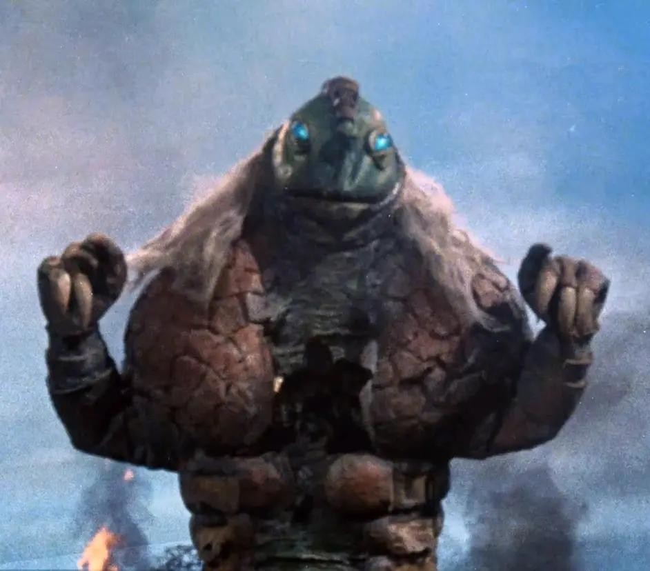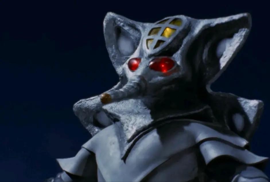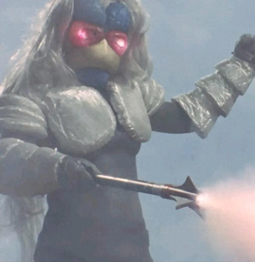 宇宙中有名的长寿种族,因为自己母星的老龄化而对其他朝气蓬勃的星球展开杀戮,在人类大小时便有巨大的怪力,能轻易掰弯铁管,多名MAC队员围攻也不是对手。被经过特训的凤源抱摔落败后巨大化,人类大小时持有的短剑变成一杆长枪“原子矛”,使用原子矛末端发射导弹进行轰炸。凤源变身为雷欧后变出一支双截棍与其对抗,但双截棍被原子矛破坏。随后与雷欧展开势均力敌的徒手肉搏,被雷欧反复重摔后,败于雷欧飞踢。