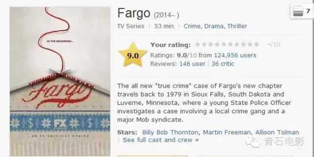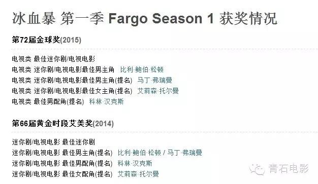 首先,先来讲下这个剧名,没错,和科恩兄弟1996年执导的电影《冰血暴》完全一致,这部电影曾获得第69届奥斯卡最佳女主角奖、最佳原创剧本奖。一个月前全球最大的电影评分网站IMDb曾列出25年来每年一部最佳电影的片单,《冰血暴》就占据1996年最佳电影头衔。