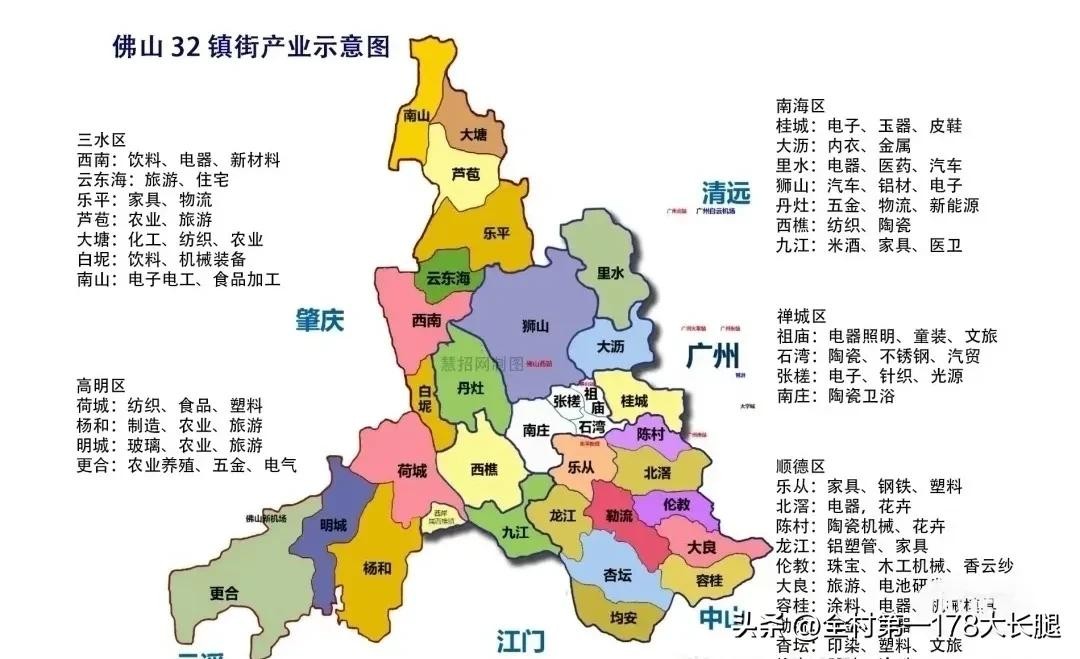 佛山下辖五区32镇街,基本每个镇街都有其产业,禅城石湾的陶瓷、张槎的针织、南庄的陶瓷、卫浴;南海桂城的玉器、大沥的金属、狮山的铝材、西樵的纺织、陶瓷、九江的米酒、家具;顺德乐从的钢铁、陈村的花卉、容桂的电器、龙江的家具……很多城市只有三五个产业支撑,佛山有些强点的镇街同时拥有几个产业在支撑,所以佛山也出了很多百强镇。我们耳熟能详的碧桂园、美的、海天、凤铝等众多企业都来自佛山,佛山在经济上是真的强劲!