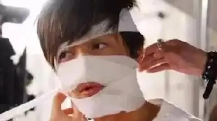 第二天,医生给胡歌换药,拆掉纱布后,看到胡歌的脸惨不忍睹,整张脸全是密密麻麻的线,几乎看不到眼睛。