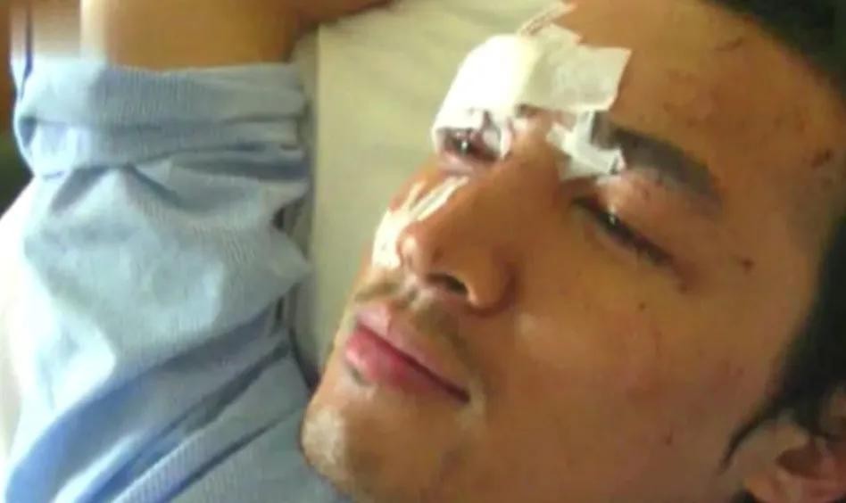 当从昏迷中再度醒来的时候,当时的他一度以为死神已经降临到自己身上,胡歌眼睛几乎看不到东西,只感觉自己的右眼和颈部一直在流血,伸手去摸自己的脸,他触手可及的只有一块块烂肉,在触碰到左眼时,摸上去的感觉就像摸在一块儿生猪肉上,血肉模糊。