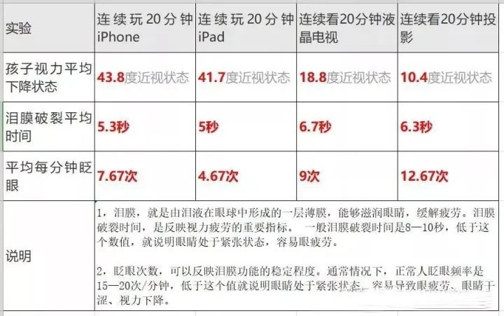 看到网上有人用:手机、iPad、电视、投影,通过对比眼睛的屈光度、泪膜破裂时间和一分钟眨眼次数的前后变化,来判断他们对视力的伤害程度!