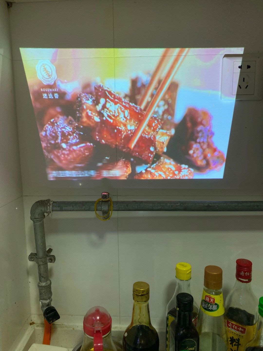 使用起来也很简单,弄一个小支架放在厨房里一边看视频一边做!自从买了投影仪不仅我也在使用,妈妈也会用它来看一些菜谱!