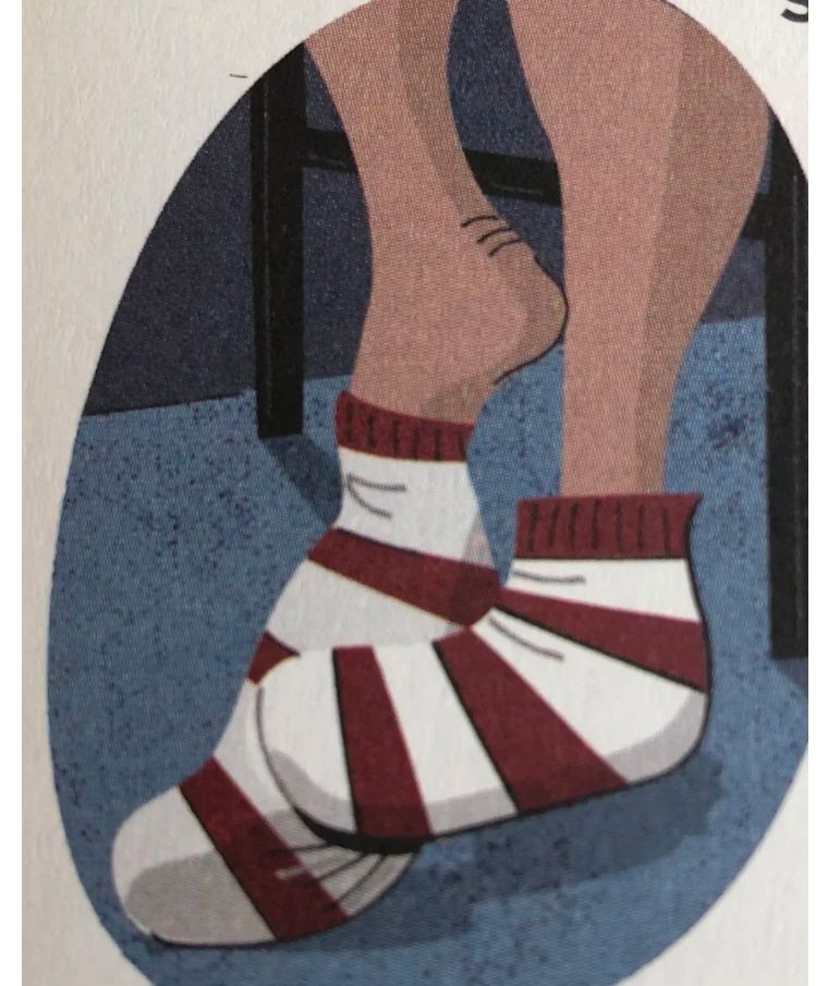 做在沙发上,穿上袜子,看看是否能用脚脱下来。