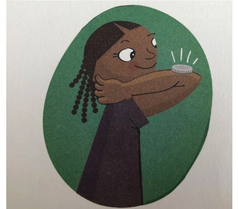 把瓶盖活硬币放在伸出的胳膊肘上。