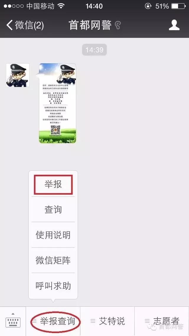 2.点击“举报查询”,您会看到“举报”、“查询”、“呼叫求助”、“微信矩阵”等5个子栏目。