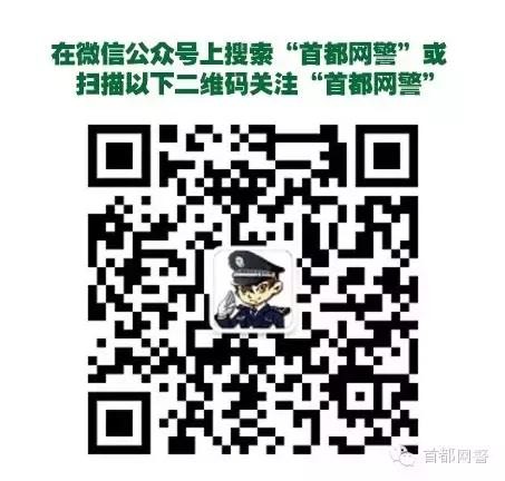 1.关注“首都网警”微信。在微信中搜索“首都网警”或扫描下面二维码。
