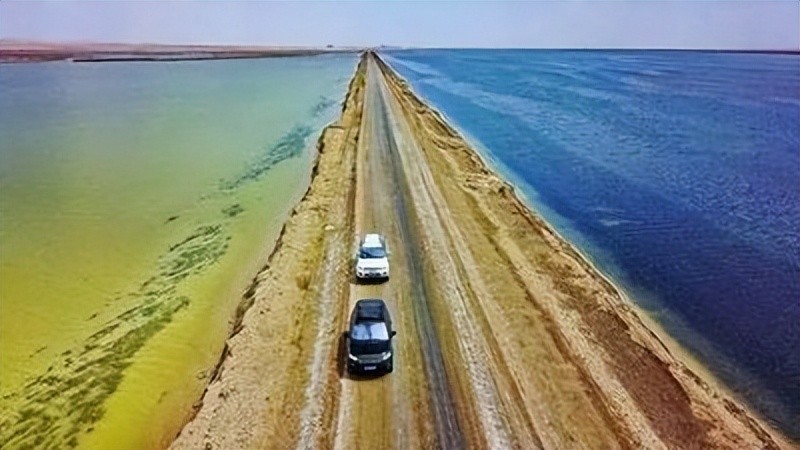 9、察尔汗盐湖上有一条用盐铺成的盐桥,全长有32公里,俗称“万丈盐桥”,这条盐桥两边是没有护栏下面也没有桥墩,表面非常光滑,开车容易打滑翻车。
