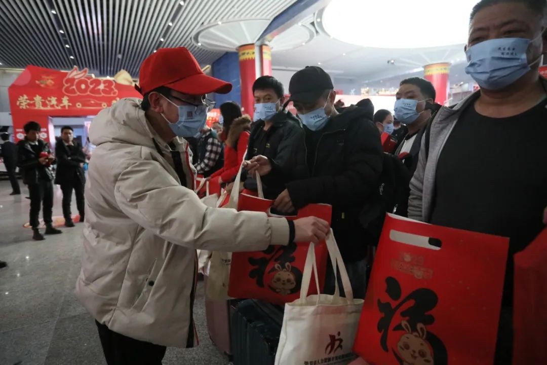 “这次乘坐返乡专列回来很高兴,我们一起回来的老乡在列车上都有说有笑,有一种开开心心回家过大年的那种气氛,所以真的很感谢政府为我们外出务工人员做出的帮助”,提着爱心包和福袋,乘坐返乡专列回乡的石亚东感慨地说道。