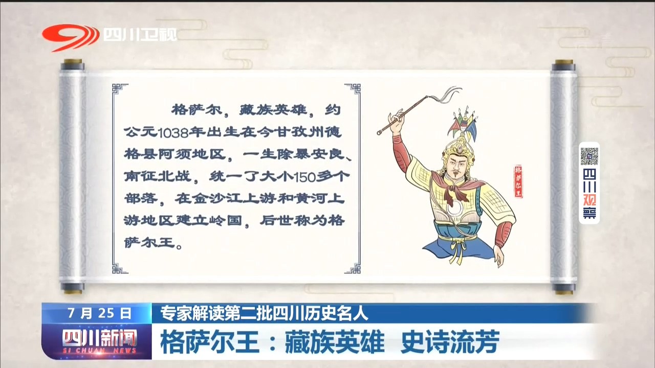 今天的《专家解读第二批四川历史名人》,我们一起走近神秘的格萨尔王。他一生戎马,惩恶扬善,以他为原型的《格萨尔史诗》也是世界上最长的史诗。