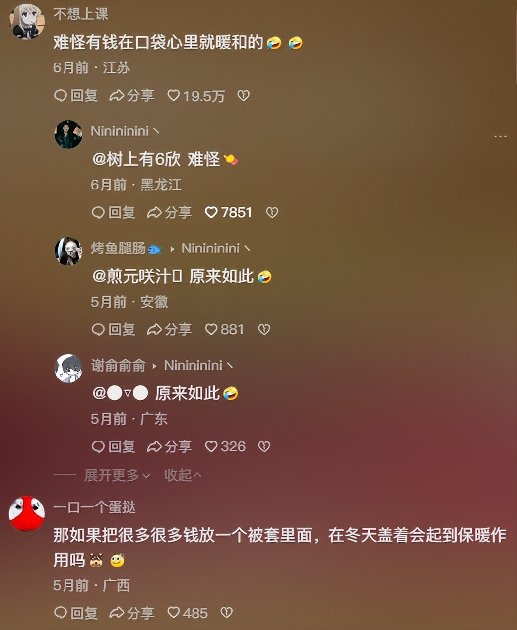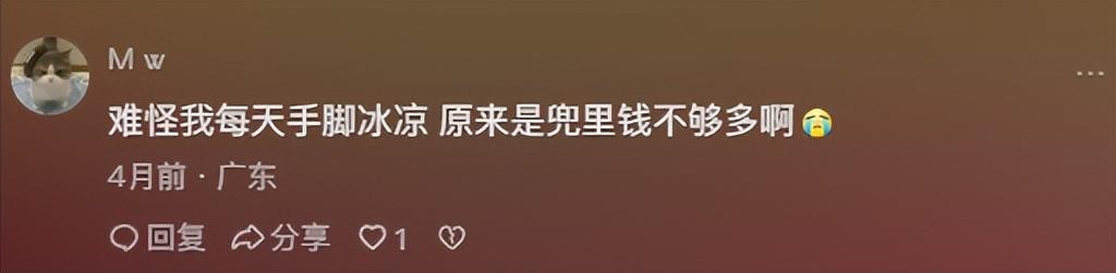 怪不得有钱再兜里心里就感觉暖暖的