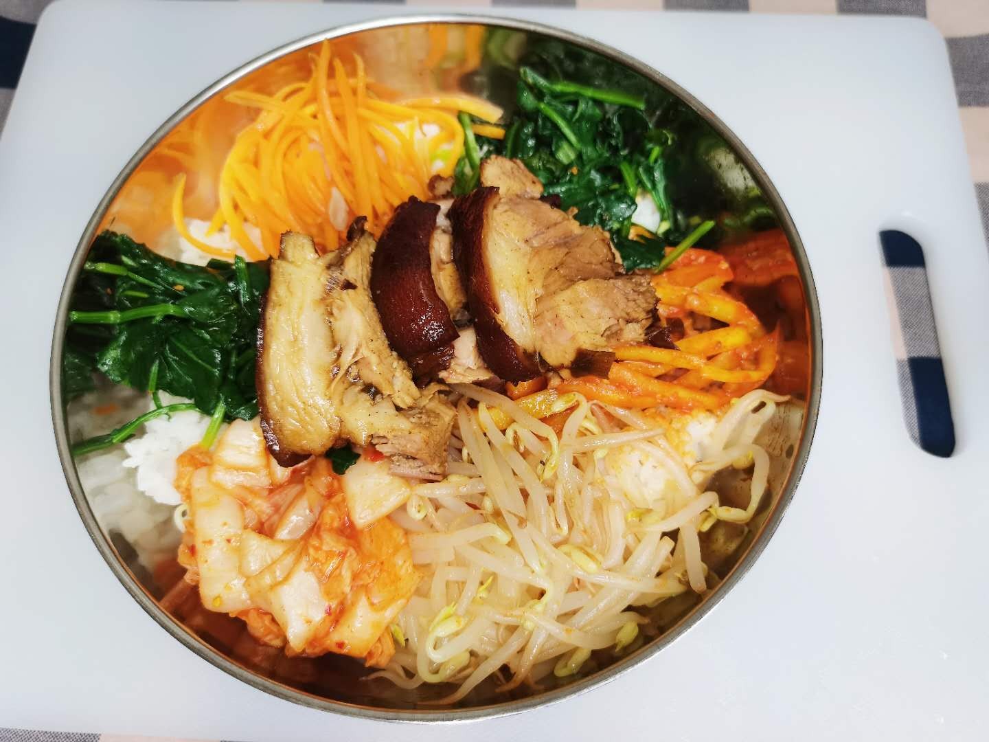 关于这道菜,还有一款推荐吃法:配上各种蔬菜的韩式拌饭,荤素搭配更合理,又营养又健康!