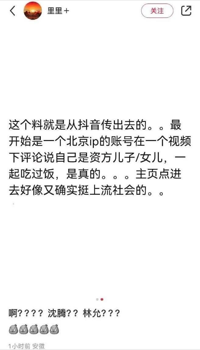 有说资方女儿和他们一起吃过饭,看到两人关系不一般,但资方女儿的账号却无人知晓。