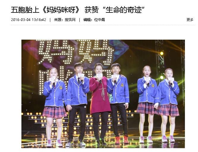 在2016年时,已经14岁的五胞胎,还登上了综艺节目,并在现场演奏了一首《听妈妈的话》,来感激母亲的养育之恩。