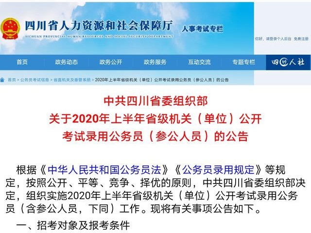 《2020年四川省上半年省级机关(单位)公开考试录用公务员(参公人员)的公告》(二)考察