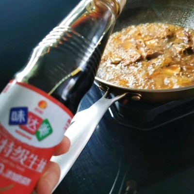 12、加入老抽调色,根据自己的口味,适当加点盐