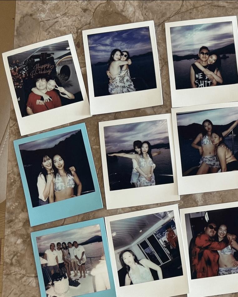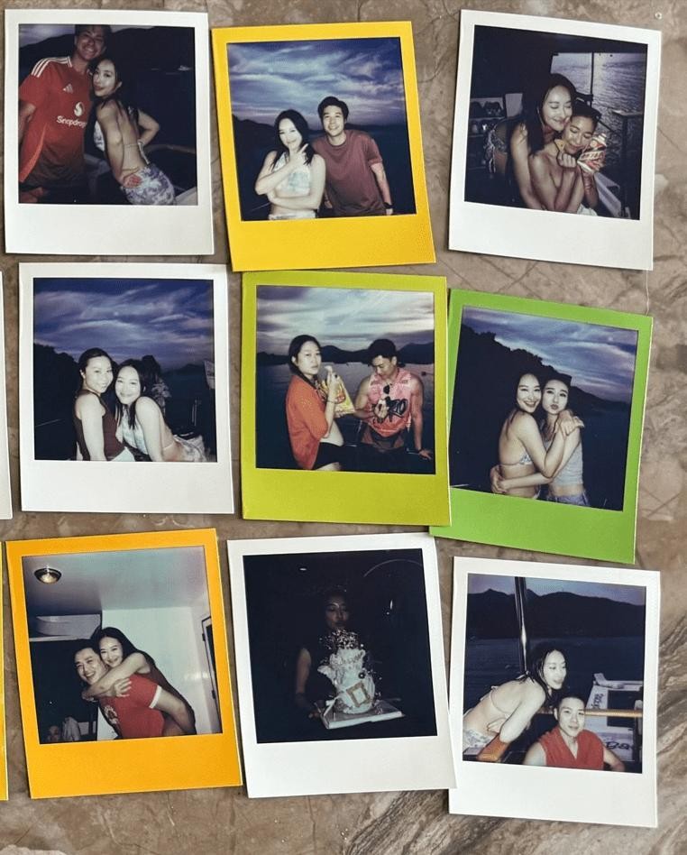 陈滢又贴出多张宝丽来照片,因而泄出不少蜜照,原来登船参加生日派对的还有朱敏瀚、张子丰,亦有因拍摄剧集《痞子殿下》与陈滢传出绯闻的周嘉洛,周嘉洛从后搂着寿星女,陈滢挨在对方怀中,单眼wink贴头合照,似足情侣般。