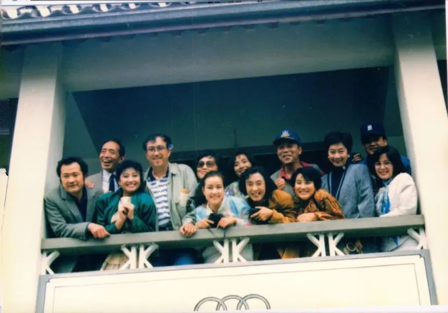 1998年,“谢晋从影五十年活动”谢晋与演员们在谢塘老宅阳台上合影