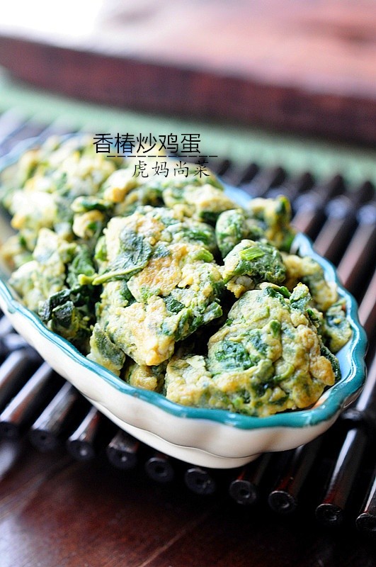若烫后将香椿洗干净了,切碎也别跟蛋液拌一起,分开入锅,这样炒出的颜色就会黄绿分明,味道也不会有任何损失,依然浓郁。