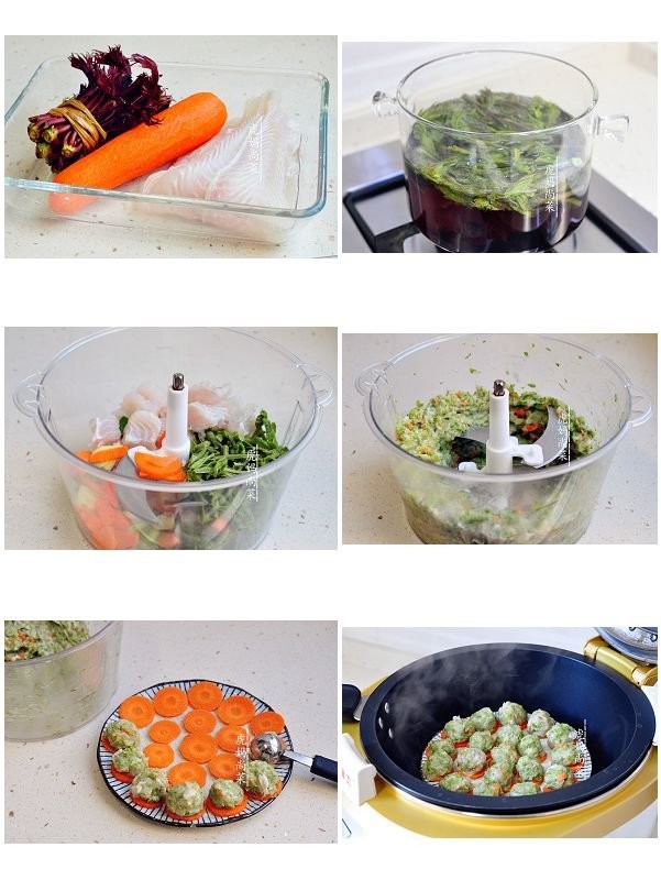 材料:香椿110克,巴沙鱼260克,胡萝卜20克。