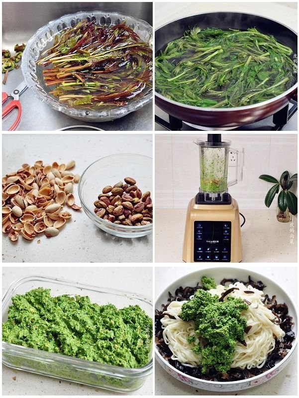 另一种风格的香椿,做成翠绿色的鲜酱,拌面拌饭都好吃。