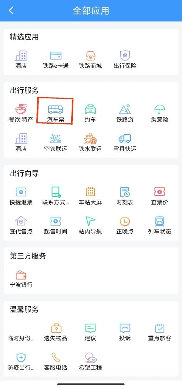 点击“汽车票”