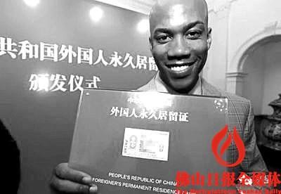 佛山日报讯 前天是马布里(上图)视为极其荣耀的一天。在北京市政府会客厅,北京市副市长张建东亲自给马布里颁发了“中国绿卡”,这让老马成为CBA 历史上乃至体育界第一个获得“中华人民共和国外国人永久居留证”的运动员。