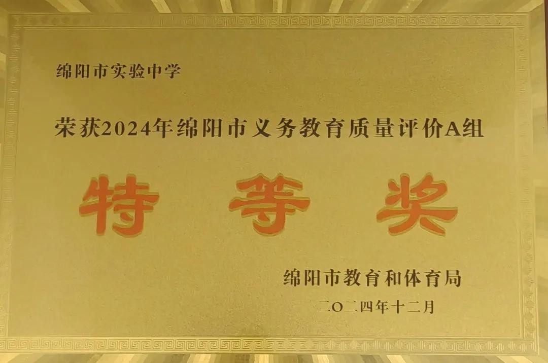 绵阳市实验中学荣获2024年绵阳市义务教育质量评价A组特等奖