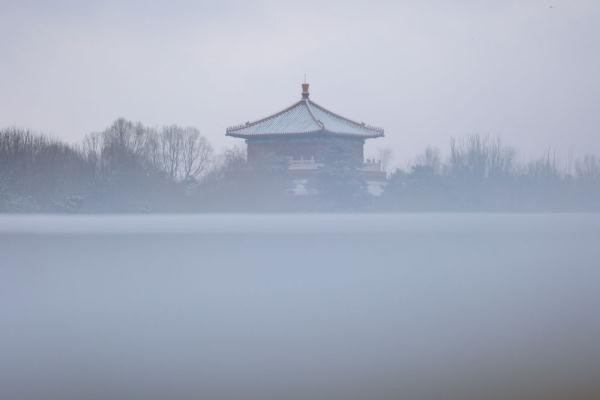 ↑12月11日早晨,游客在景山上拍照、留影。新华社记者 李鑫 摄