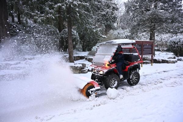 ↑12月11日早晨,景山公园工作人员驾驶除雪车作业。新华社记者 李鑫 摄