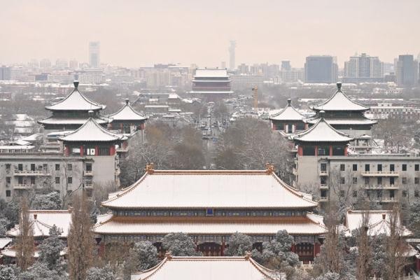 ↑12月11日,从景山眺望鼓楼。新华社记者 李鑫 摄
