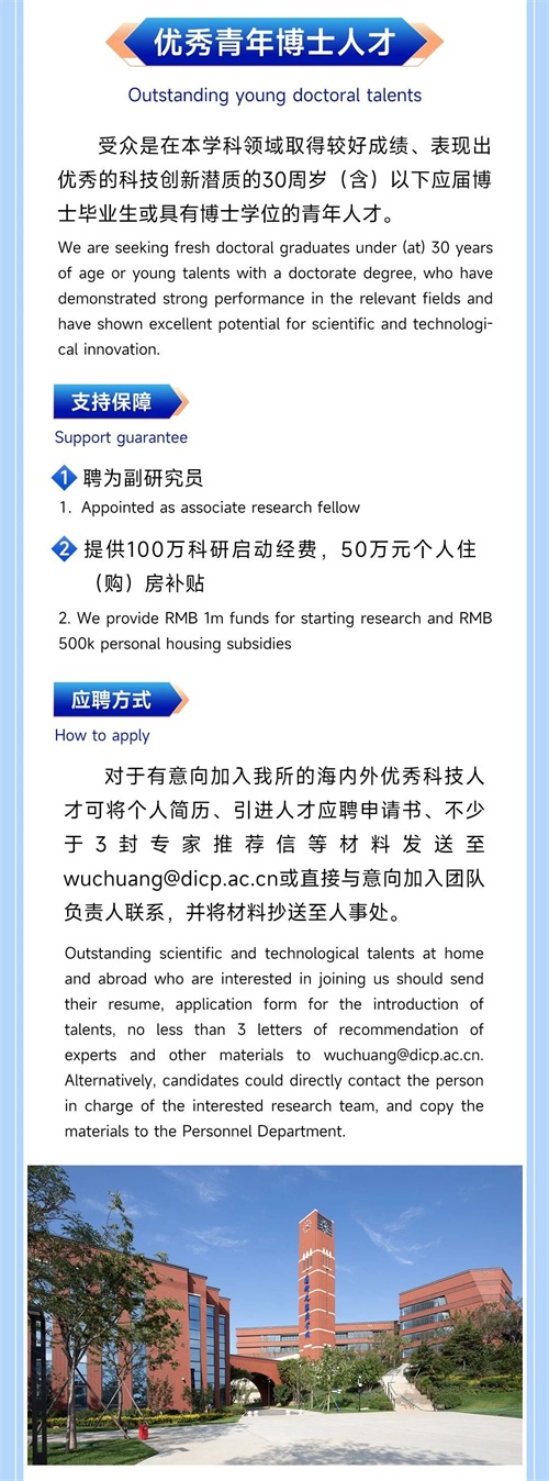 中国科学院大连化学物理研究所2025年海内外各类人才招聘