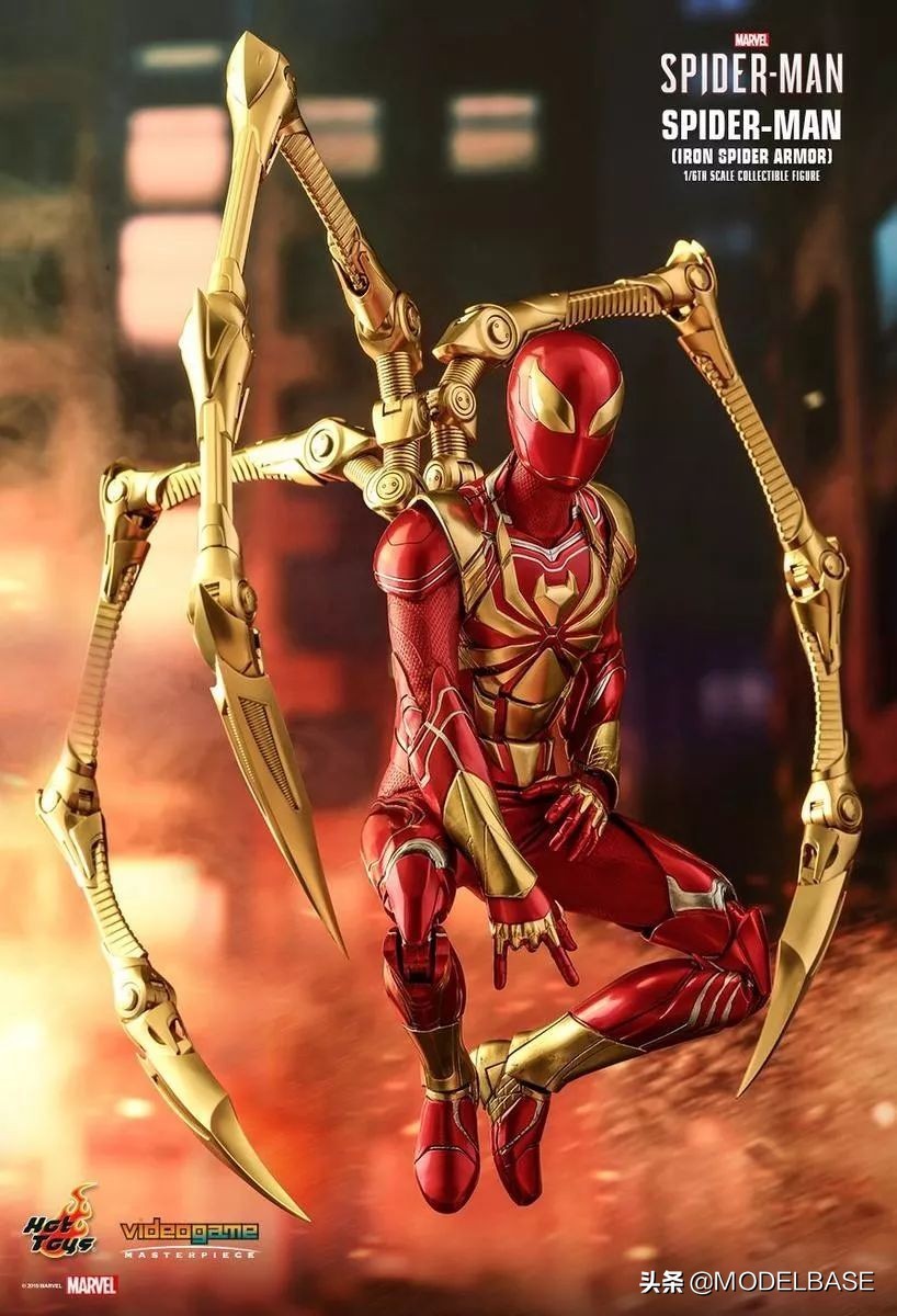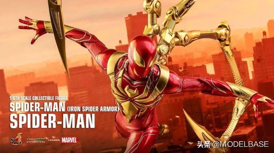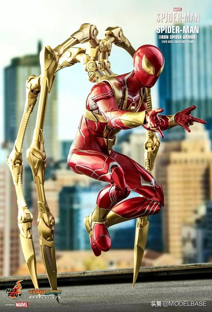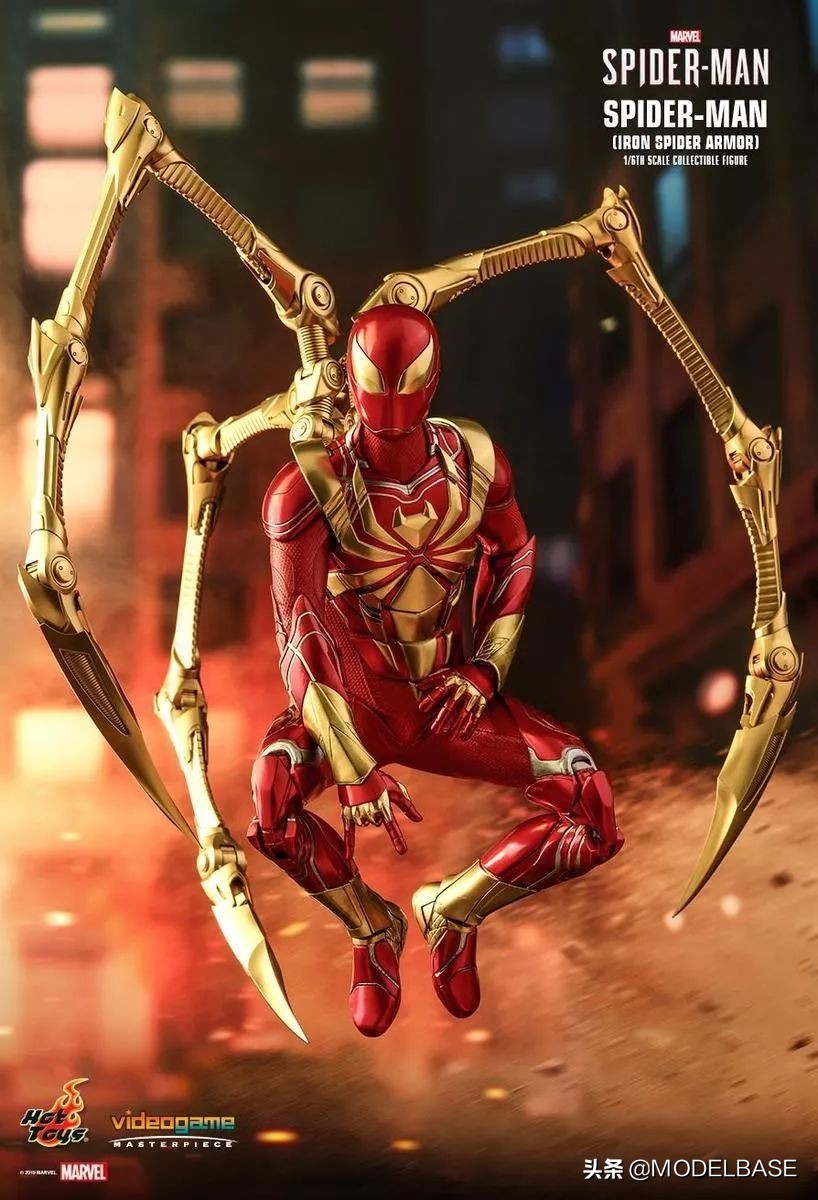 论造型,这款游戏版本的钢铁蜘蛛侠特点鲜明,设计也十分新颖。主体由红金配色组合,背部还有三个机械爪。在我看来是要比电影版的钢铁蜘蛛侠更具视觉冲击力的。而且HT为这款蜘蛛侠作了超可动的设计,外甲是由亮面漆面和包胶组成,对整体的可动干涉比较小,可以摆出很多高难度动作。而且加上机械爪的尺寸达到了30cm,相比同比例的其他人偶更霸气一些。