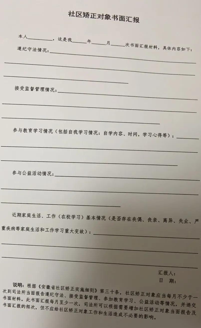 在缓刑考验期内,李某某未按要求书写思想汇报,存在重复单一,内容摘抄于网络。司法所对其作出第一次警告,随后提升监管级别加强对徐某某的监管教育。