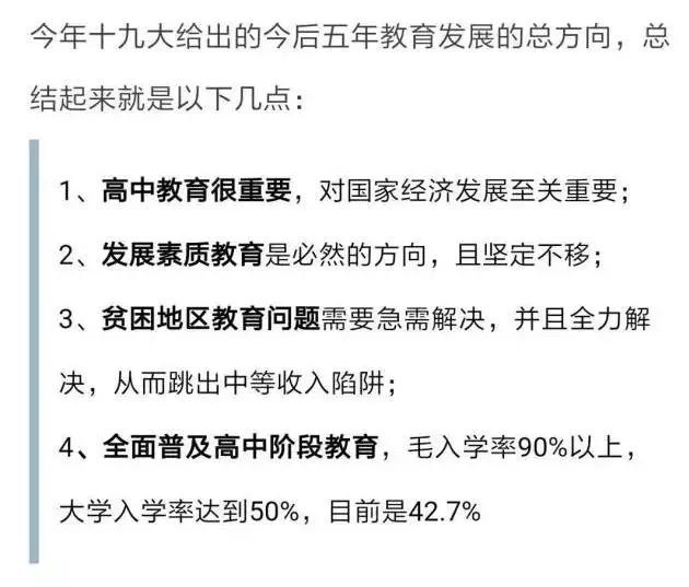 在教育部官网查阅后,发现图片的内容确实是准确的。在十九大报告中,确实是明确提出普及高中阶段教育。