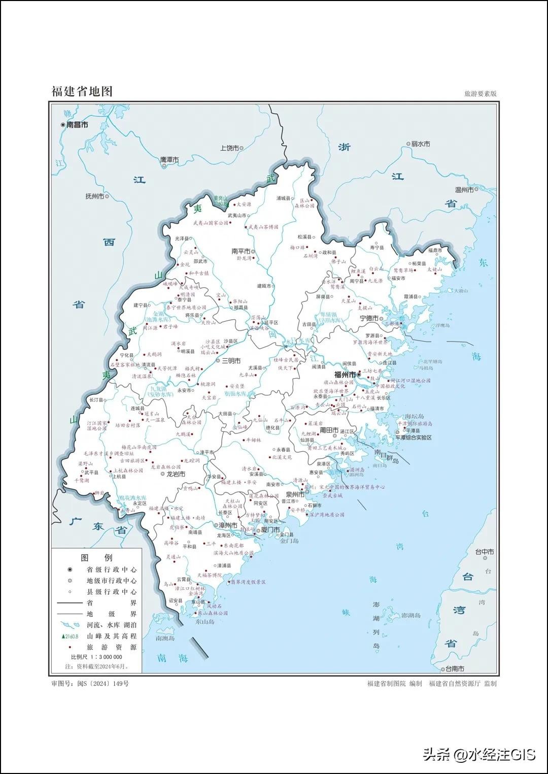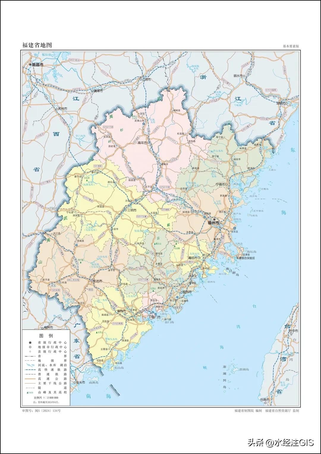 这些地图包含行政区域版、基本要素版、交通要素版、旅游要素版、水系要素版等几个多个尺寸地图,下面我们展示部分福建标准地图。