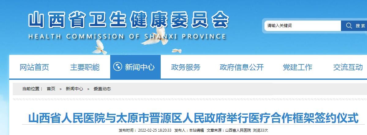山西省人民医院与太原市晋源区人民政府举行医疗合作框架签约仪式
