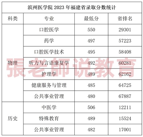 滨州医学院2023年在福建省招生类型是普通类本科批,其中物理组录取最低分480,省排名67887;历史组录取最低分482,省排名17001。