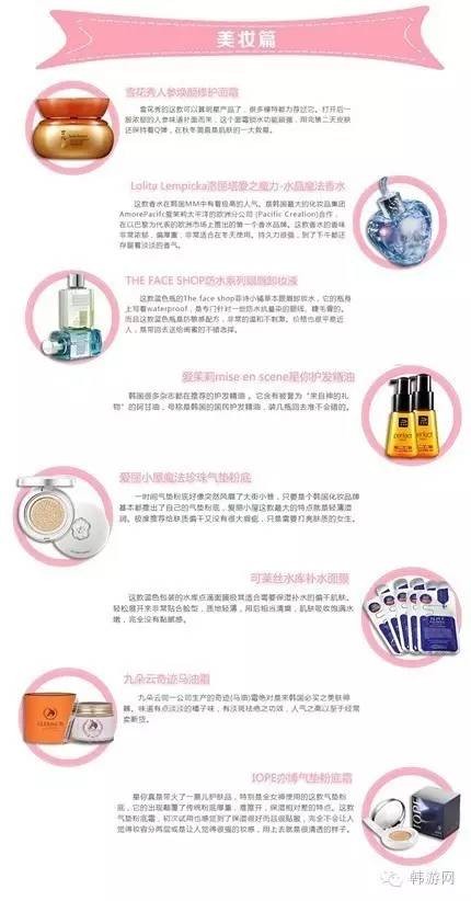 来韩国旅游,除了美食,景点,就是购物啦,那么到底应该在韩国购买什么,在哪里买也是一门学问奥,下面小编就为你列个必买清单,不管是自己用还是送朋友,都是不错的选择呢~