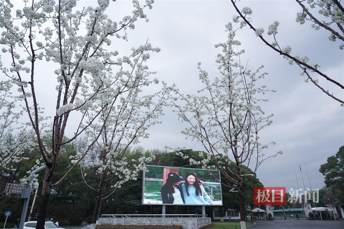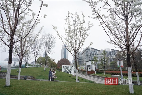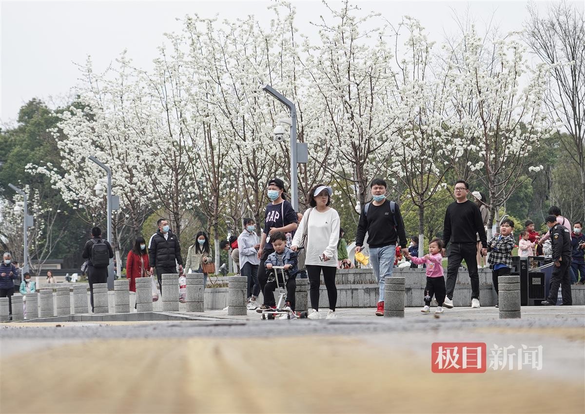 3月11日,极目新闻记者沿着梨园·漫商业街走向东湖绿道,刚出地下空间,只见二十来棵梨树排成两行,花开满枝。透过雪白的梨花望去,梨园两个字格外显眼。开得正艳的梨花让众多游客驻足停留,感受春天之美。梨园景区在东湖西北岸,与对岸滩头相望。为东湖生态旅游风景区主要园林之一。