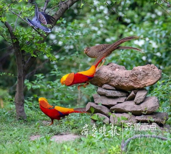 红腹锦鸡也叫金鸡,是雉类中最为美丽漂亮的一种鸟类,也是我国独有的珍贵品种。这种鸟完全是在野生鸟,它全身羽毛颜色互相衬托,赤橙黄绿青蓝紫俱全,光彩夺目,是驰名中外的观赏鸟类。