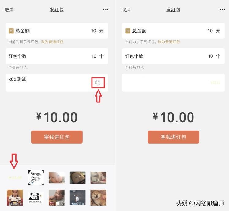 然后到微信表情里手动把素材添加为表情,接着点击发红包,然后选择表情。