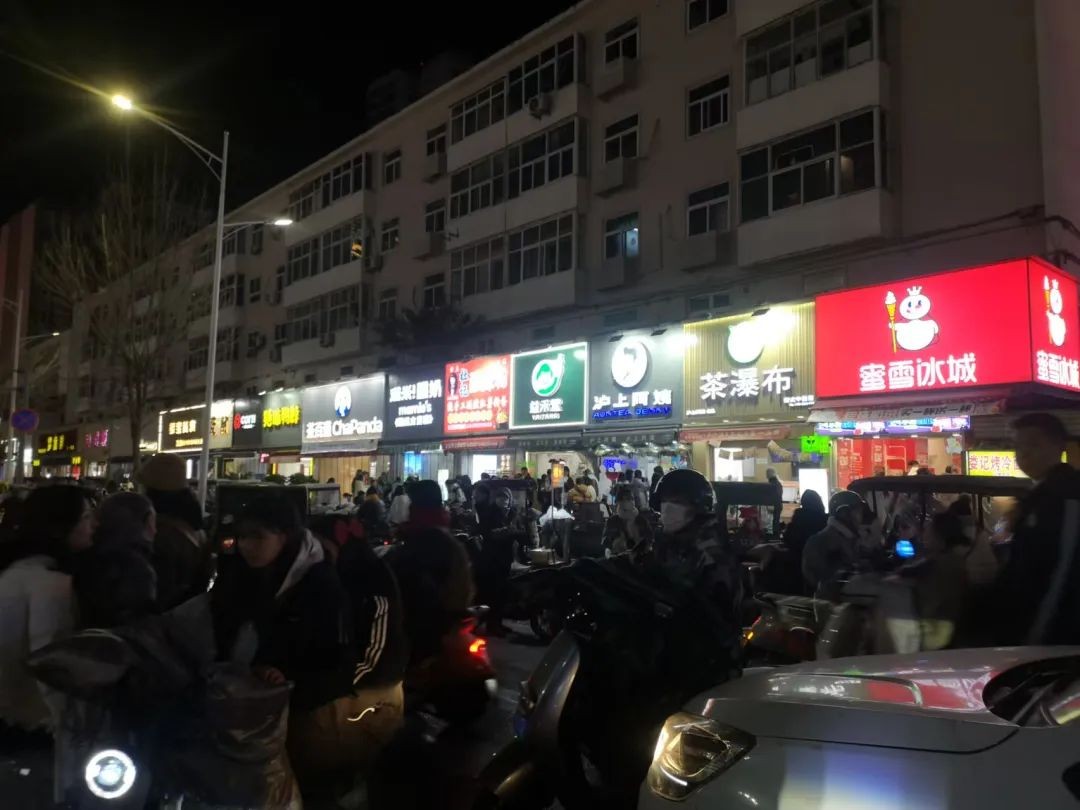 战争一度从价格卷到了营业时间。不知道从何时开始,西大街上再也找不出一家在晚上10点半之前关门的茶饮店,好几家店把营业时间延长到凌晨1点半,蜜雪冰城更是开出了新乡第一家24小时营业的门店,牢牢守着西大街入口这个战略要塞。