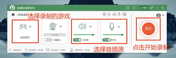 步骤2:自由选择录制的游戏区域,调整录制参数,如视频格式、帧率等。点击“REC”按钮,数据蛙就会开始捕捉屏幕上的内容。