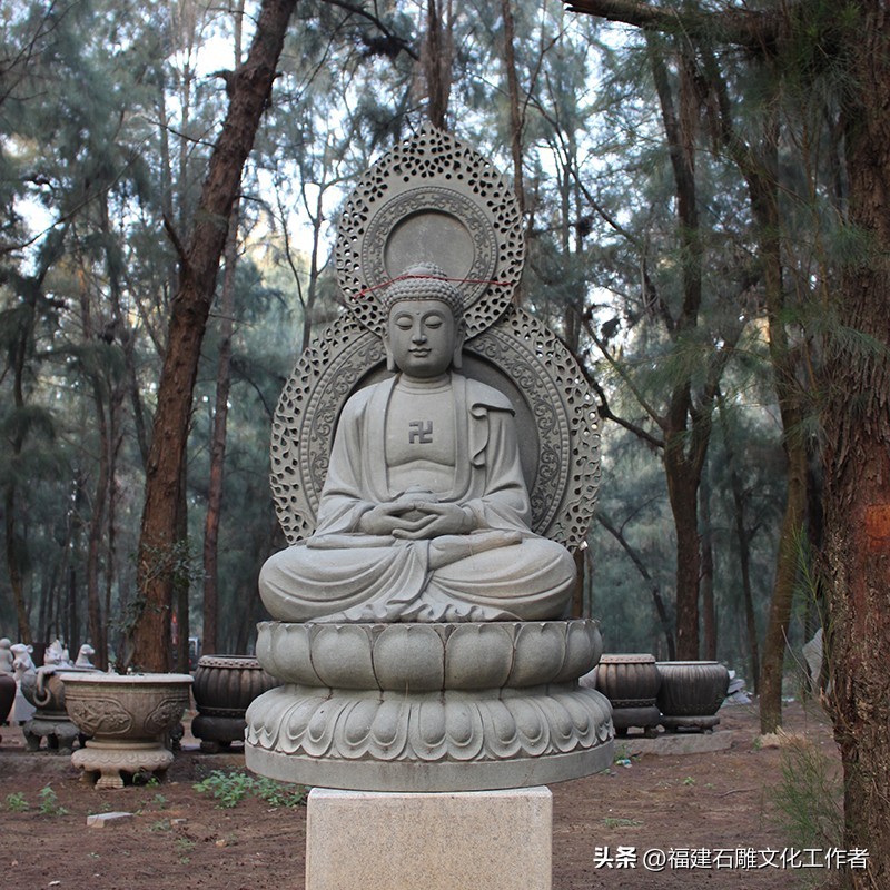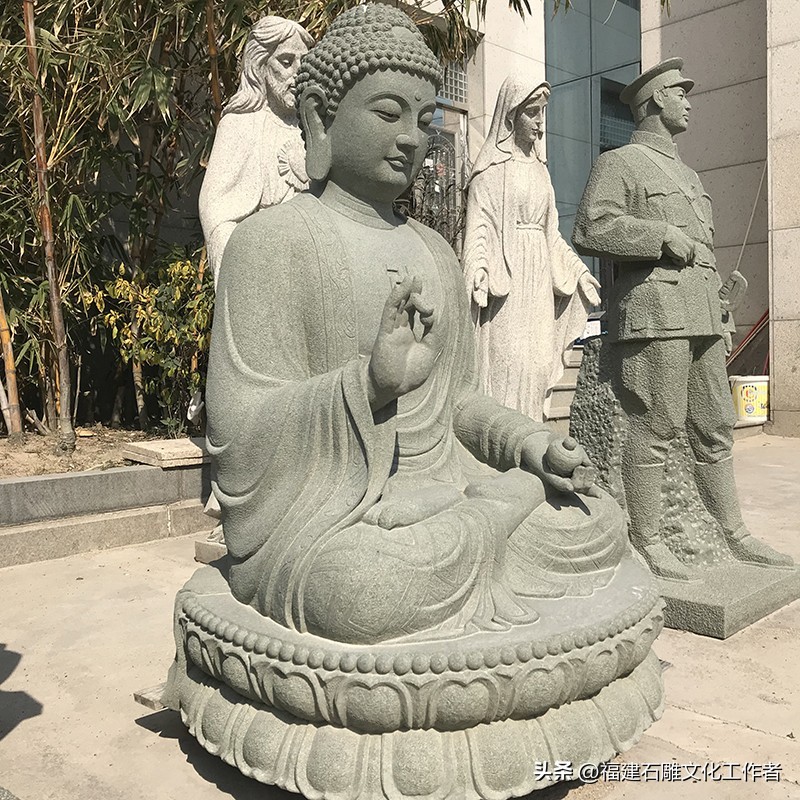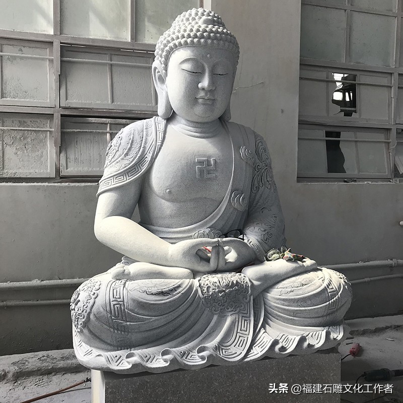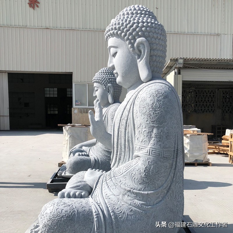 接下来,我为大家详细介绍石雕如来佛祖的释迦五印。说法印:以拇指与中指(或食指、无名指)相捻,其余各指自然舒散。这一手印象征着佛说法之意,表现佛陀于鹿野苑初转法轮时的状态。它代表着以法轮摧破烦恼,使身心清净,因此也被称为“转法轮印”。施无畏印:右手臂上举于胸前,手指自然舒展向上,掌心朝外。这一手印表示佛陀以自己的智慧力量使信众消除恐惧,象征着布施无怖给众生。据说,这一手印能使众生心安,无所畏惧,因此得名“施无畏印”。禅定印:双手掌心向上相叠放于膝上,右手置于左手之上,两拇指指端相接。这一手印象征着禅定状态,代表着内心如如不动、外不着相的修行境界。